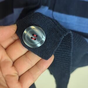 Great condition! solved. 100% cotton, tight knit ,roll cuff sleeves, deep v neck, two front open pockets, ribbed knit on hemline and sleeve cuffs.
