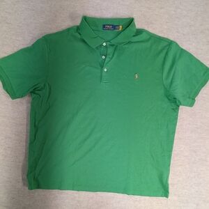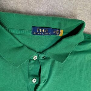Experience classic style with the Polo by Ralph Lauren Green Men's Shirt. Perfect for any occasion, this shirt offers comfort and style. Super soft cotton knit shirt. Classic polo with colorful embroidered logo. A few spots on the back pictured, but still tons of life left in this awesome shirt. size 2X