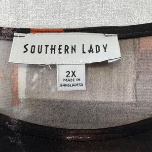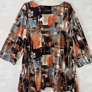 Southern Lady Blouse Womens 2X Multicolor Abstract 3/4 Sleeve Tunic Top