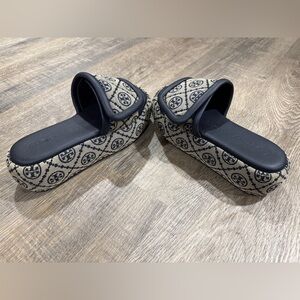 Tory Burch T Monogram Bubble Slip-On Slides Sandals- Blue, Women’s Size 6M