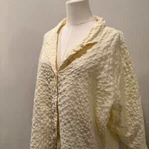 d & co.Textured Button Down Shirt 3X Butter Yellow Crinkle Cotton Blend Pastel