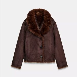 NWT Zara Faux Fur Reversible Jacket Coat Brown XXL