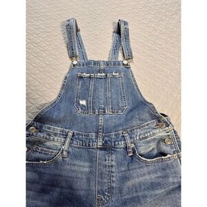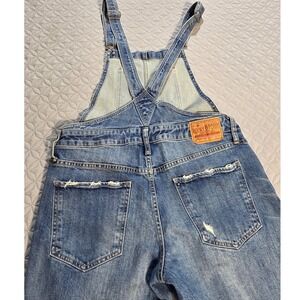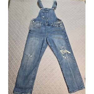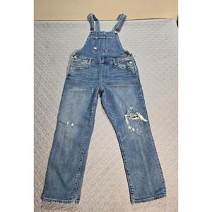 Lucky Brand Distressed Denim Overalls Medium Wash Ripped Straight Leg Blue