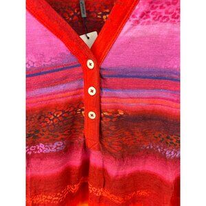 Chico's Cotton Slub Rio Sunset Henley Tee Top Sunset Peach Size 3 XL