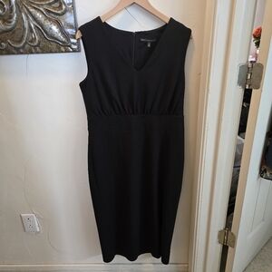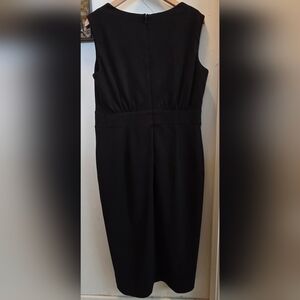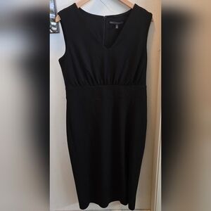 Chic black midi dress with a sleeveless design. Perfect for versatile styling.