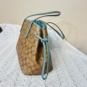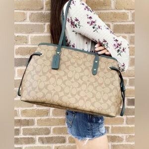 Coach #F57842 Brown and Green Shoulder Bag with Signature Design