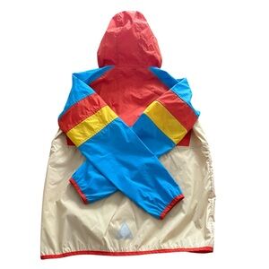L.L. Bean Kids Colorblock Raincoat Size L 14-16. Hood and front zip pocket. Awesome retro look. Very good used condition with very light wear, no holes or stains.