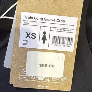 Stylish black crop top with gray accents. Long sleeves for versatile wear. Ideal for active lifestyles.