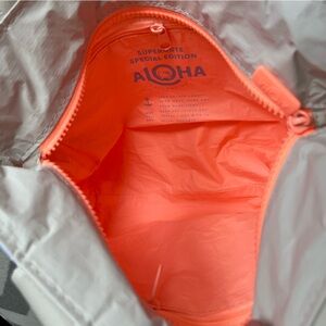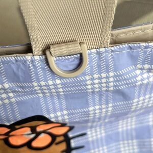 Aloha Collection x Hello Kitty periwinkle palaka Mini tripper tote bag. Approx dimensions: 12.5" across the top, 9" tall, 4" gusset. Has two interior zip pocket and one exterior zip pocket. D ring at strap for keys or charms.
