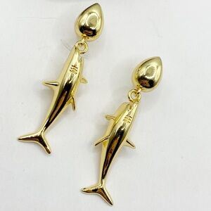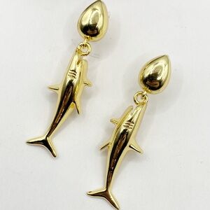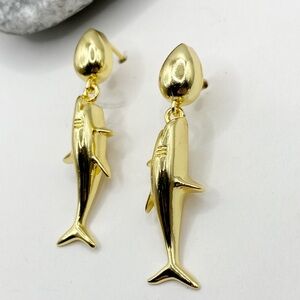 NEW Gold Great White Shark Drop Earrings