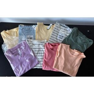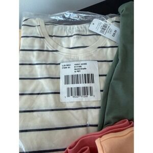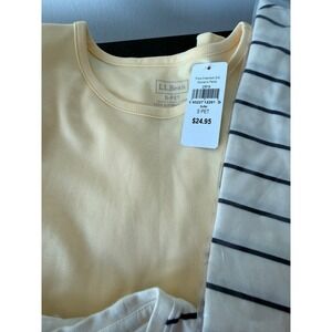 Get ready for spring/summer with this bundle of nine L.L. Bean Supima cotton t-shirts in a variety of solid colors and classic stripes. This collection features a mix of V-neck and crew neck styles, all crafted from soft, high-quality 100% Supima cotton for exceptional comfort and durability. The assortment includes shades of yellow, blue, green, pink, peach, and lavender, along with timeless striped patterns. Perfect for building a versatile wardrobe of premium basics that transition easily from season to season. Three of the nine are new with tags (see pic); the other six are in excellent condition with minimal wear.