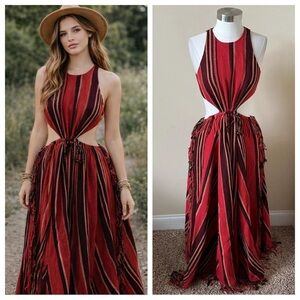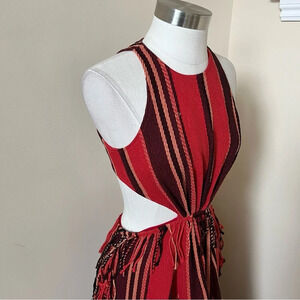 Ulla Johnson Caterina Red Black Stripe Fringed Maxi Dress 17882
