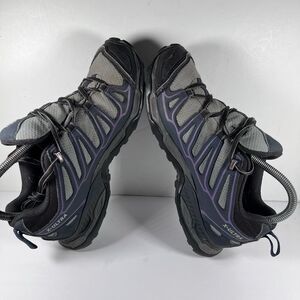 This listing is for a pair of women's size 7.5 Salomon X Ultra Prime hiking shoes. These shoes are pre-owned. Some dirt/staining in the uppers, in the tongue area of both shoes. Tread has minor wear but lots of life left. Please see photos for details.