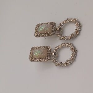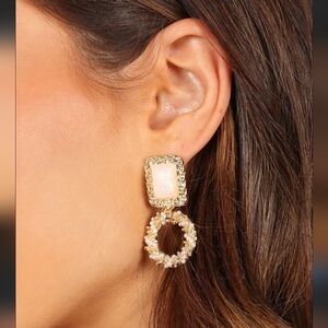 These stunning dangle earrings feature a luxurious gold and cream design, perfect for adding a touch of elegance to any outfit.