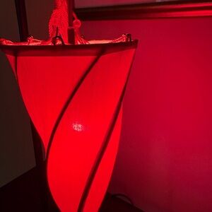 Illuminate your space with this stunning red Art Deco lamp. Its unique design adds a touch of elegance to any room.