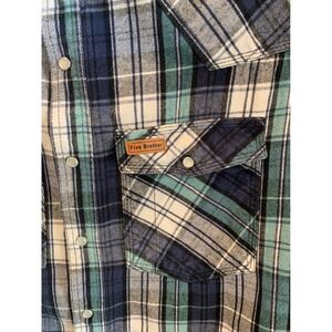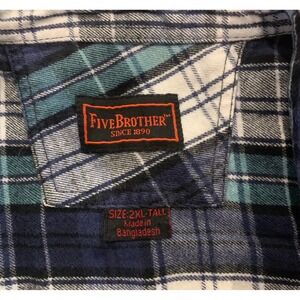 Five Brother Blue Teal Plaid Western Heavy Flannel Pearl Snap Shirt 2XL Tall