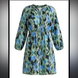 Floaty, flirty, and full of color—this vibrant mini dress brings effortless boho charm to your everyday style. Featuring a ruffled neckline, billowy sleeves, and a comfy cinched waist, it creates that easy, free‑spirited silhouette we all love. The abstract floral print in rich blues and greens gives it a dreamy, artsy vibe perfect for brunch, weekend markets, or a sunny day out.