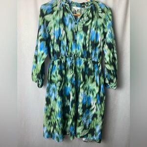 Boho Chic Ruffle Neck Mini Dress Time & Tru Green and Blue Patterned Mini Dress