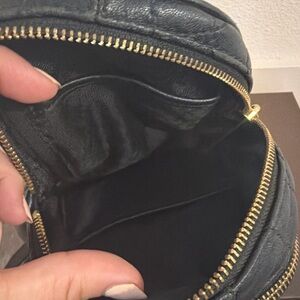 Pre-owned with visible corner wear and light hardware scratching. Interior is clean and zippers function properly. Stylish compact backpack perfect for everyday use.