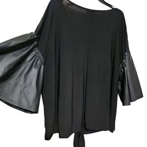 Cocomo Top For Size 3X Black Stretch Lightweight Vneck Flare Sleeve