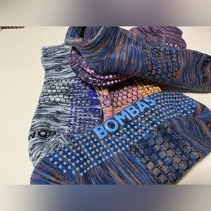 Stylish and comfortable Bombas grippers. Features pink, yellow, and blue designs. Ideal for casual wear.