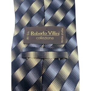 Roberto Villini Collezione Mens Silk Tie Gold Grey Black Diagonal Stripe