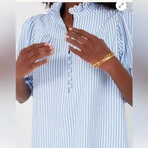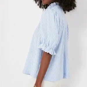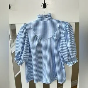 Tuckernuck Pomander Place Flirty Blue Stripe Selena Blouse Still sold on site! M