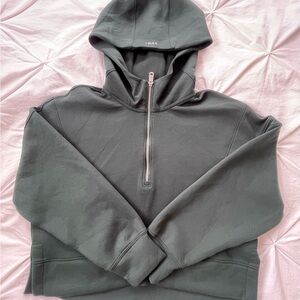 Stylish hunter green sweatshirt. Features a half-zip design. Comfortable and versatile, worn once.