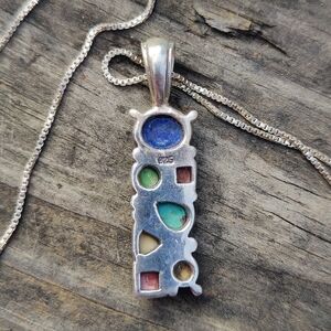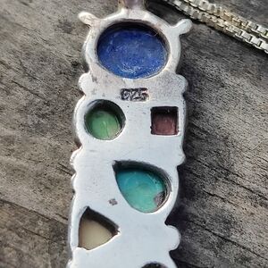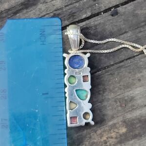 gorgeous vintage sterling 18-in necklace with a 1.75 in sterling silver pendant featuring multiple types of gemstones. stamped 925 on the chain and pendant