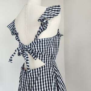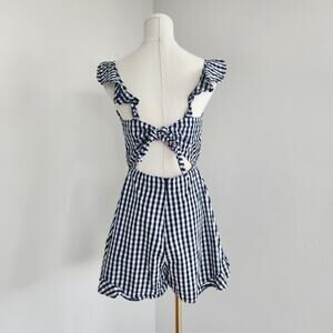 Saks Fifth Avenue Black White Gingham Ruffle Romper Tie Back Cotton Size M