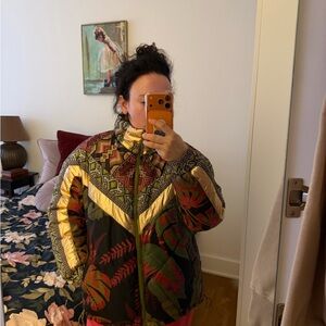 FARM Rio Tropical Rauti MetallicVibrant Gold and Green Puffer Reversable Jacket
