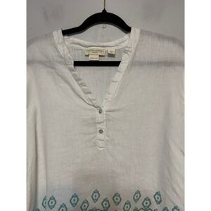 Cynthia Rowley Coastal Boho 100% Linen Blouse Womens Size 2X Cottagecore Artsy