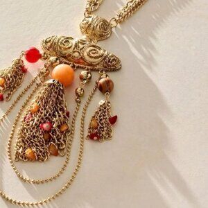 Elevate every look with this layered necklace adorned with floral charms and a fringe bottom pendant at bottom for the perfect finishing touch. Adjustable lobster clasp closure, Mixed chain detailing, Colorful beading.
