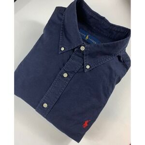 Ralph Lauren Mens XL Classic Fit Navy Blue Cotton Button Down Shirt Red Pony