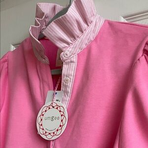 Chic pink top by Umgee. Features puff sleeves and a stylish collar. Ideal for casual outings. NWT. Never worn.