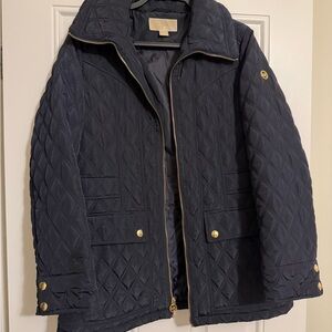 Gently worn. Stay warm and stylish with this quilted navy jacket. Perfect for any occasion.