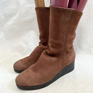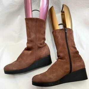 Arche boots hazelnut brown nubuck leather wedge high heel mid calf 38 7 zip up