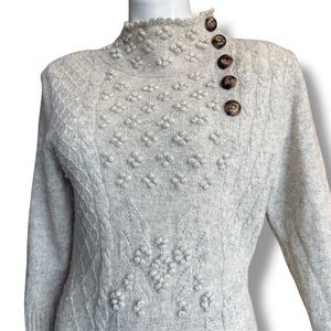 Anthropologie Moth Wool Blend Sweater Large Cream Bobble Knit
