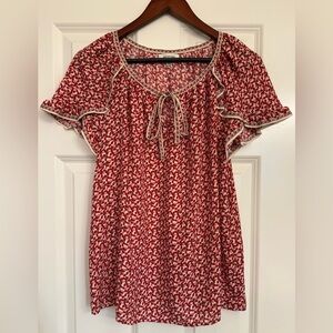 Beautiful Max Studio short sleeve blouse in a romantic red and cream floral print 🌸