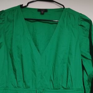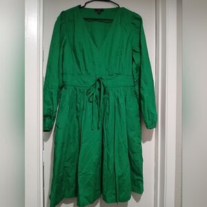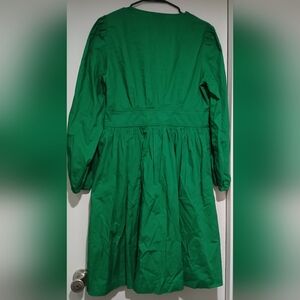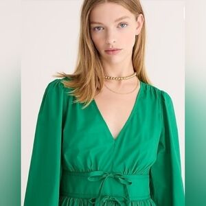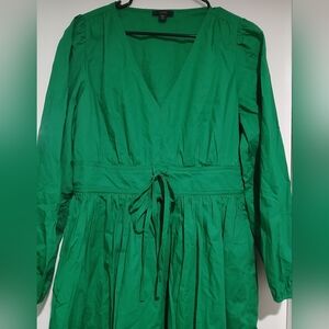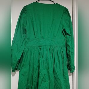 J. Crew Vibrant Kelly Green Long Sleeve Poplin Dress