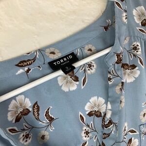 Torrid Harper Blouse Women 3 Blue Floral 3/4 Sleeve V-Neck Top Cottagecore Boho