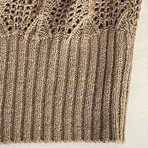 Long sleeves with ribbed cuffs add a cozy touch, while the breathable open knit cotton blend makes it perfect for spring and summer.