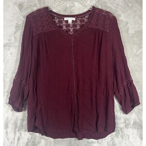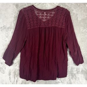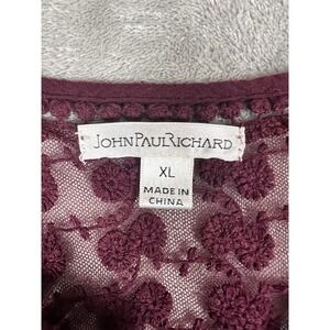 John Paul Richard Womens Red Velvet Mosaic Knit Top Long Sleeve XL Lace