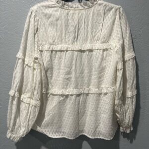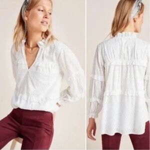 This elegant white top is perfect for any occasion. Its classic design offers a sophisticated look, making it a versatile addition to your wardrobe. (E)