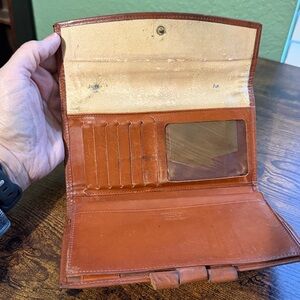 This wallet is in pre-owned vintage condition with visible signs of wear consistent with age and use. The coin pouch has patina and wear on the edges, and the interior shows some discoloration (see photos). Despite this, the wallet remains structurally sound and functional.