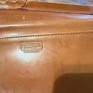 vintage Dooney & Bourke wallet, pebbled leather clutch or checkbook organizer from the All-Weather Leather collection. Shows its age, stains