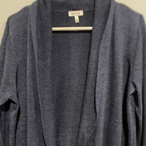 Navy EllaMoss Open Cardigan Long line. Feminine front hem. Closet staple with its neutral color and classic style.