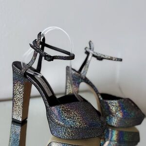 New JIMMY CHOO Sacaria Glitter Platform Sandal $925 40