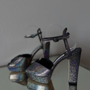 Disco glamour never dies in this dance floor-ready sandal that shimmers as you shimmy in glittery leather, from the ankle strap to the block heel and platform. 4 1/2" (114mm) heel; 1 1/4" platform (size 39) Adjustable ankle strap with buckle closure Leather upper, lining and sole Made in Italy Women's Designer