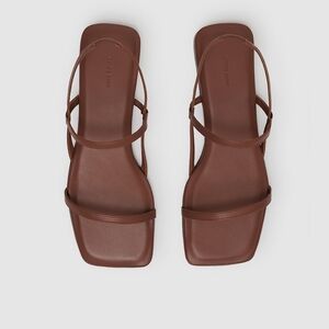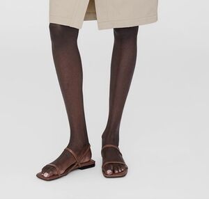 A minimal style made from smooth 100% leather. The Hilda Flat Sandals' simple construction features thin straps with elastic at the back, a high-shine leather outsole, and seamless cushioned footbed.